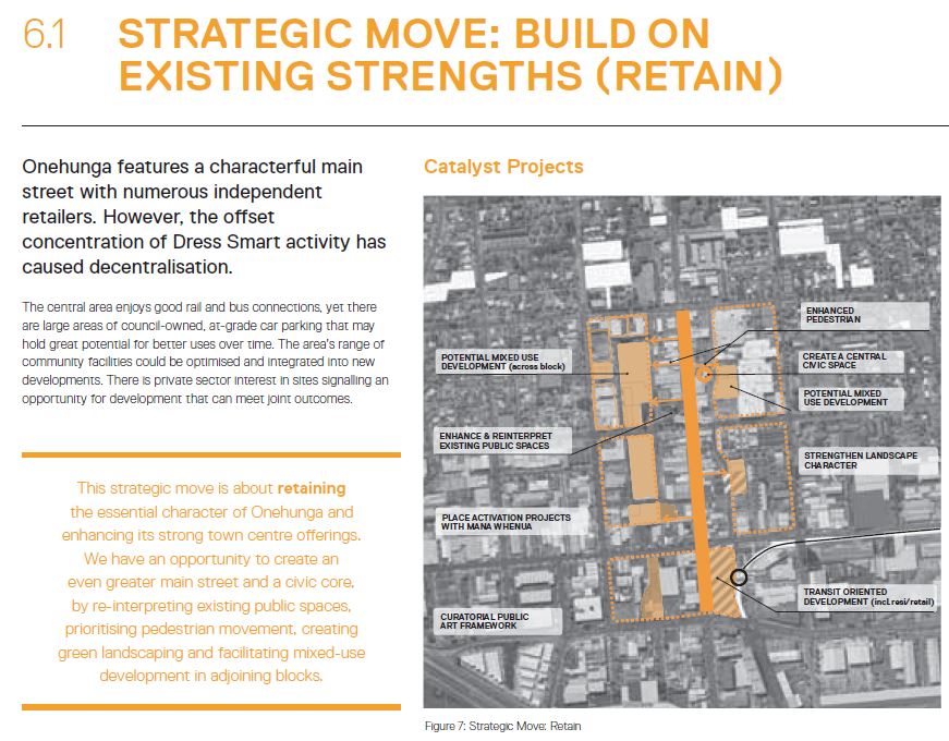 This seems to be mainly focused around reinforcing the strong main-street character of Onehunga through public space improvements and supporting some key redevelopment opportunities. If anything this strategic move seems a bit timid but it would be great to see those carparks just off the main street be redeveloped into much needed housing.