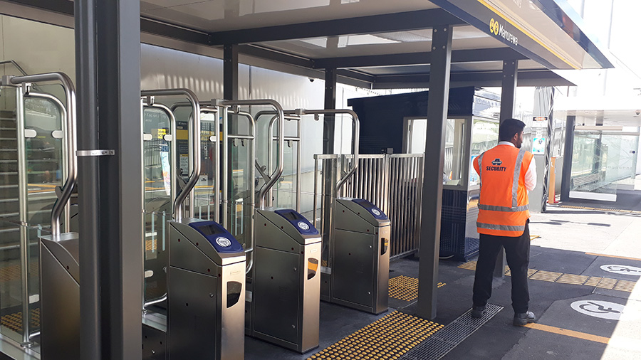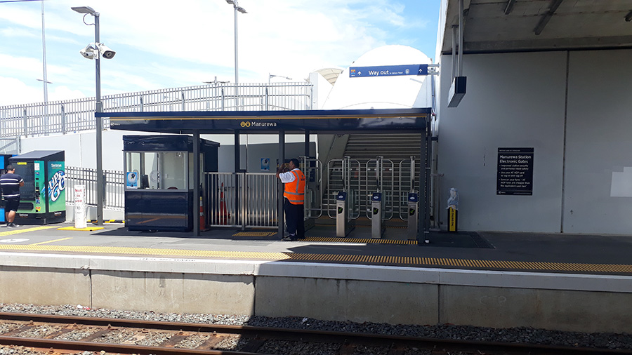 Wow, with Manurewa 2X security guards always need to be there one for each side, I guess they handle the paper ticket gate too? Certainly is expensive to run, but I think is probably worth it even with more transit police coming on board (pardon the pun). I guess security guards are often in place on a lot of stations part time when they have no gates anyway.