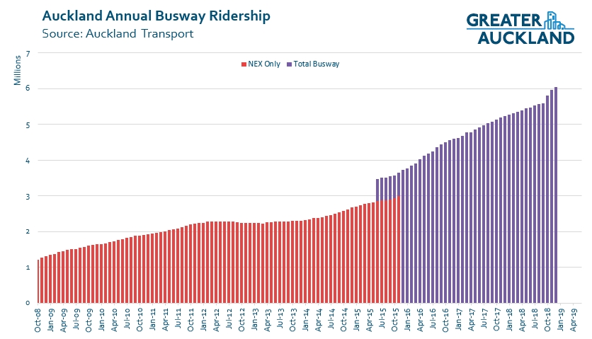 Looking at some of the results from above a little more closely, you can see the busway had another fantastic month and in December passed 6 million annual trips first time. If the current growth continues, it will quickly become our single busiest PT line – currently the Western Line with just over 7 million boardings annually.