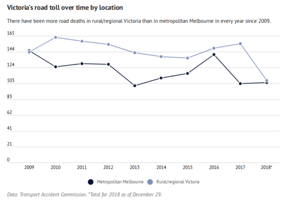 Victoria’s drop in road deaths by 17.8% was much better than the Australian average of a 6.4% drop.