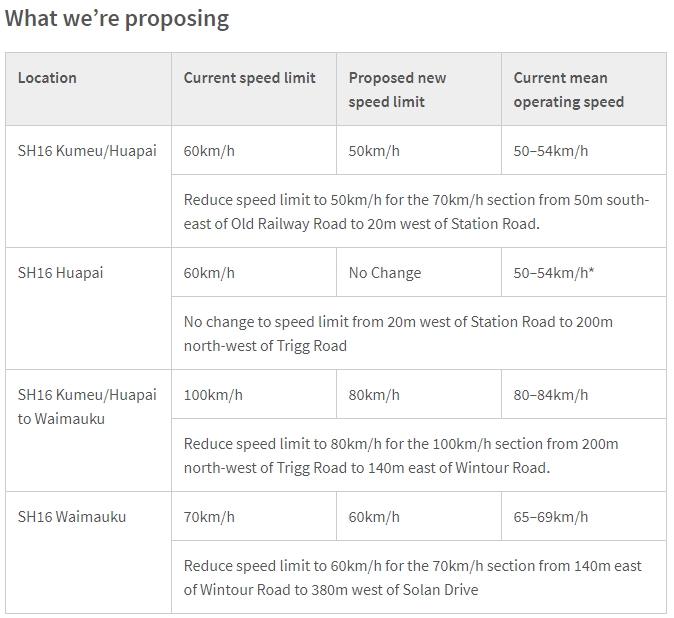 It’s not just AT that are looking to improve safety though lower speeds and the NZTA this week proposed lowering the speed limit on SH16 between the end of the motorway at Brigham Creek Rd and Waimauku