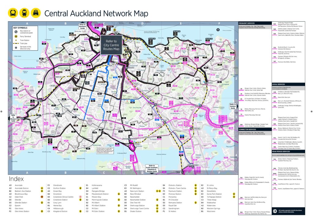 The central Isthmus is where the bulk of the NZ Bus routes are. The blue lines represent where some partial service will run