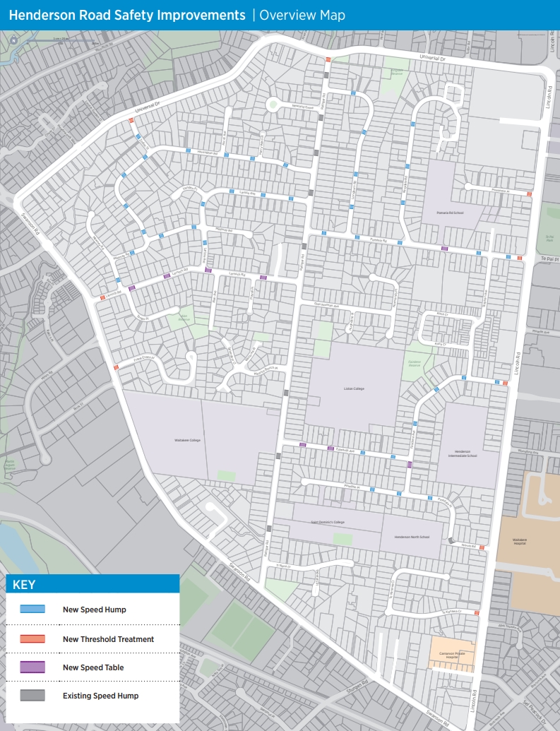 In recent years AT have started wider area scale safety improvements. Examples include at Te Atatu South and Papakura and now’s it’s the turn for Henderson North in the areas surrounding Rathgar Rd and covers six schools. Over the last few years a number of speed tables have already been added to Rathgar Rd and as a route I ride down as part of my commute I know they’ve made a difference in slowing cars down.