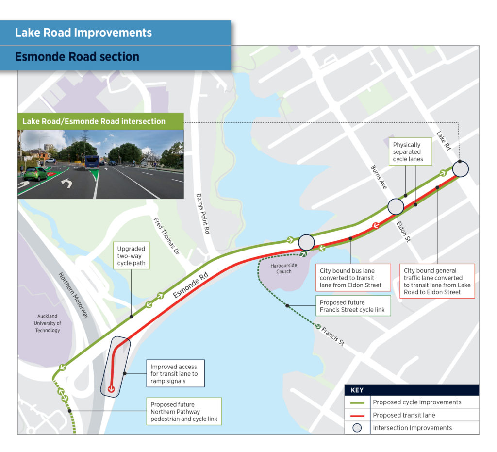 Auckland Transport (AT) is seeking feedback from the community on proposals for a $47M upgrade of Lake Road, Esmonde Road and Bayswater Avenue.