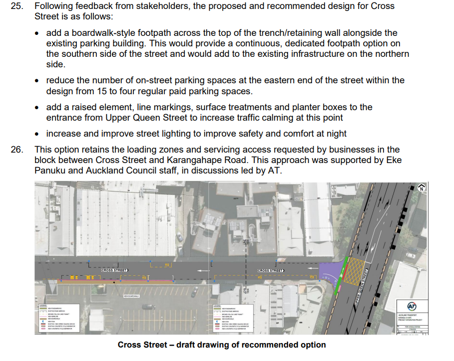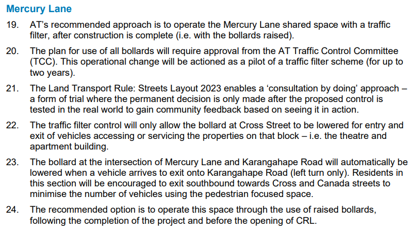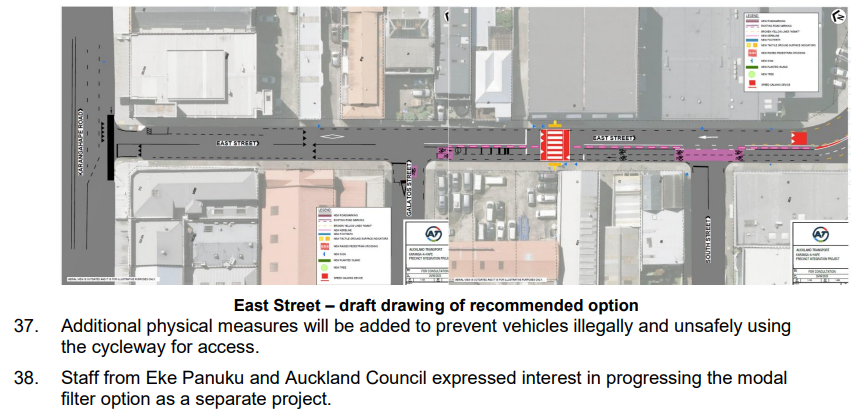The great news is that it appears Auckland Council and Eke Panuku [now the Auckland Urban Development Office inside Council] expressed interest in exploring the modal filter, and it wouldn’t be too hard to develop and implement it later.
