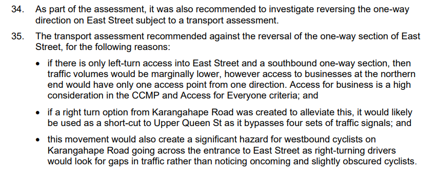 For reducing rat-running, making East St one-way southbound would work better, and the Waitematā Local Board advocated for as much in May. But local businesses had some concerns. It’s probably fine for AT to stick to one-way northbound for now.