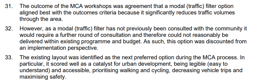 The need to consult aside, trying for a modal filter could potentially jeopardise the project’s funding as it would likely need to go back to NZTA. Which, given the parameters NZTA is operating within via the GPS, would be a terrible idea.