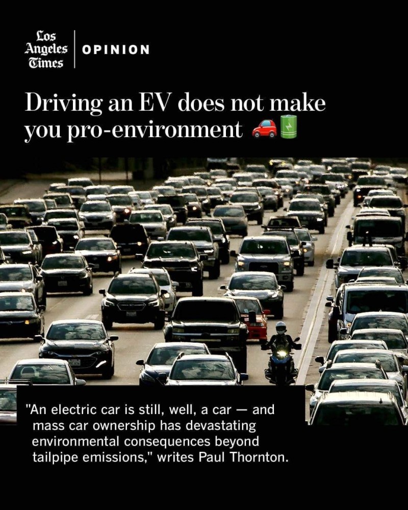 Electric vehicles are the polar opposite of “transformative, systemic change”. Accelerating electric vehicle adoption reinforces the systemic problems that cause outcomes like climate-damaging pollution in the first place.