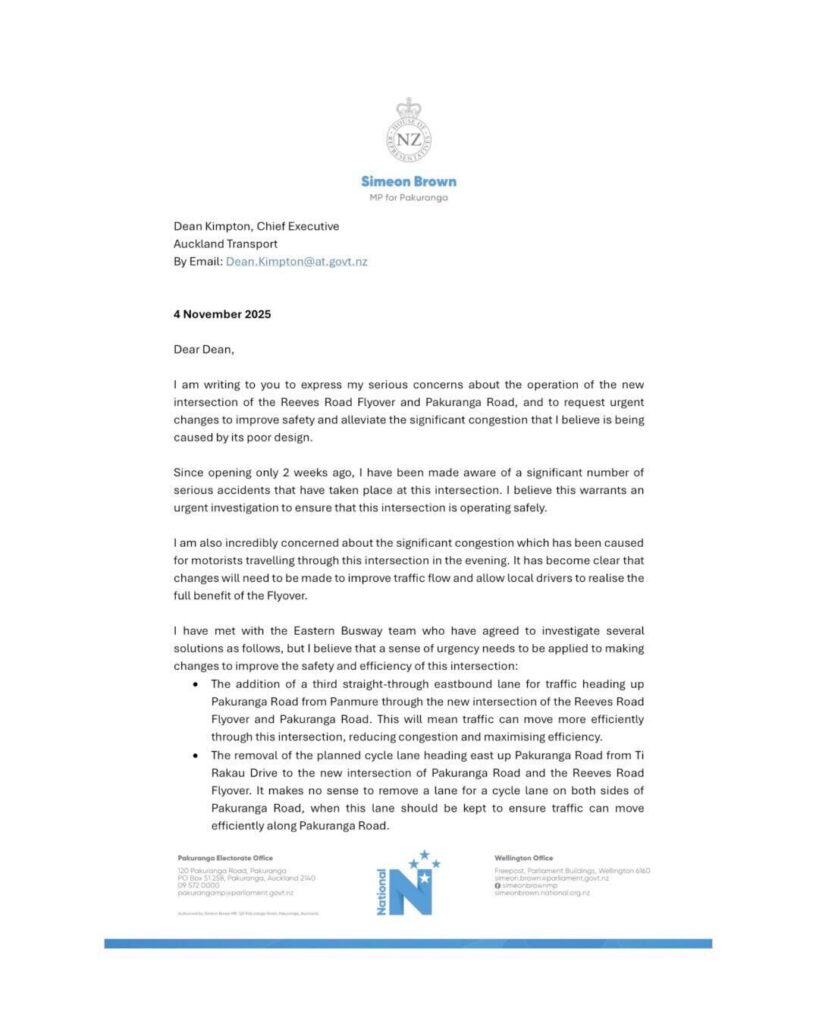 Coincidentally, Simeon Brown decided this week – just one month after a jubilant post on 1 October proclaiming “How good is the new Reeves Road flyover” – to lobby Auckland Transport for a last-minute redesign of Rā Hihi/ the Reeves Road Flyover intersection.