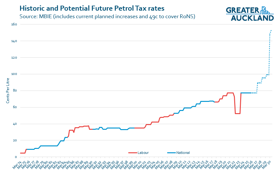 As I’ve said, to deliver all of the RONS petrol tax and RUC would have to rise by 70% or 49c per litre. This would be on top of the planned increases we’ve set out for 2027 onwards.