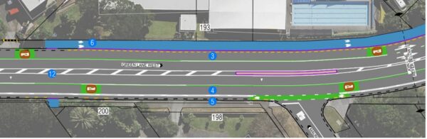 On the narrower sections near Great South Road the thing that gets dropped are the bike lanes — you’re effectively asked to ride on the footpath there. That can work if there aren’t many pedestrians and cyclists. We’ll see.