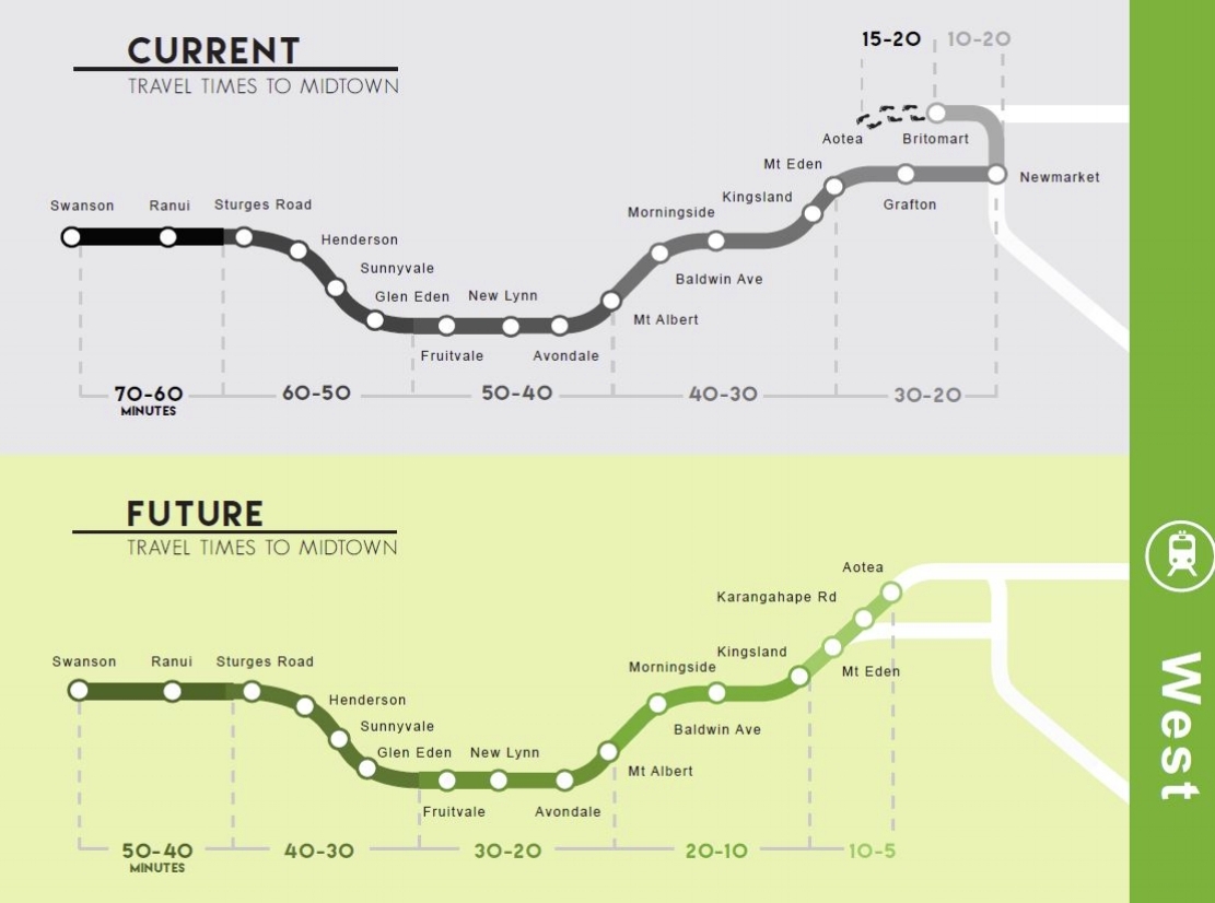 Currently, AT is planning to pair the Western Line with the Eastern Line – running trains from one line directly through to the other.