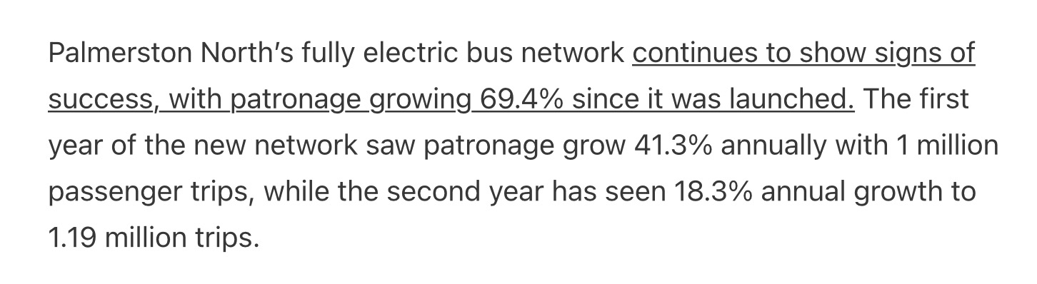 Of course, this will work at scale in our biggest cities. But it’s also a good option for our steadily improving provincial towns and smaller cities, which have made big strides with electrification and network redesign – e.g. Queenstown, Nelson, Whanganui, and Palmerston North: