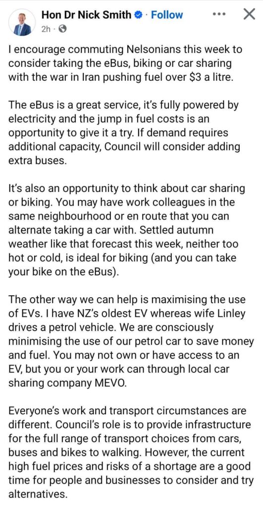 We’re also seeing local politicians step up to fill the storytelling gap. Former National MP Nick Smith, Mayor of Nelson, was quick out of the starting blocks with this encouraging message: