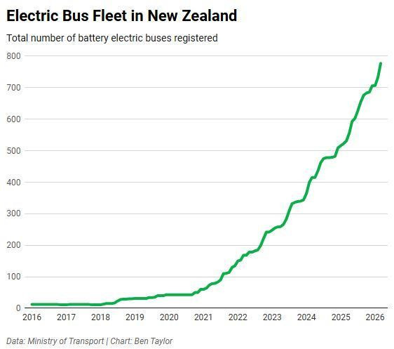 I approached Auckland Transport for some local data on this, and they were especially helpful. We’ll get to that data soon, but first check out this chart showing the electrification of the national bus fleet, made by Ben Taylor (via Bluesky).