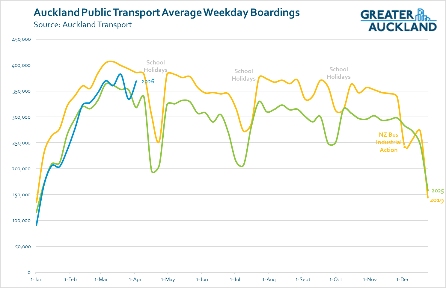Across the country, you can already see a rise in ridership showing up in the data, without the benefit of any preemptive action by authorities. Here’s how the recent uptick looks for Auckland: